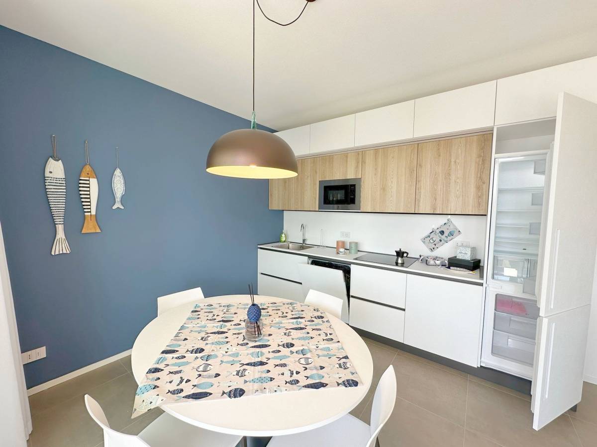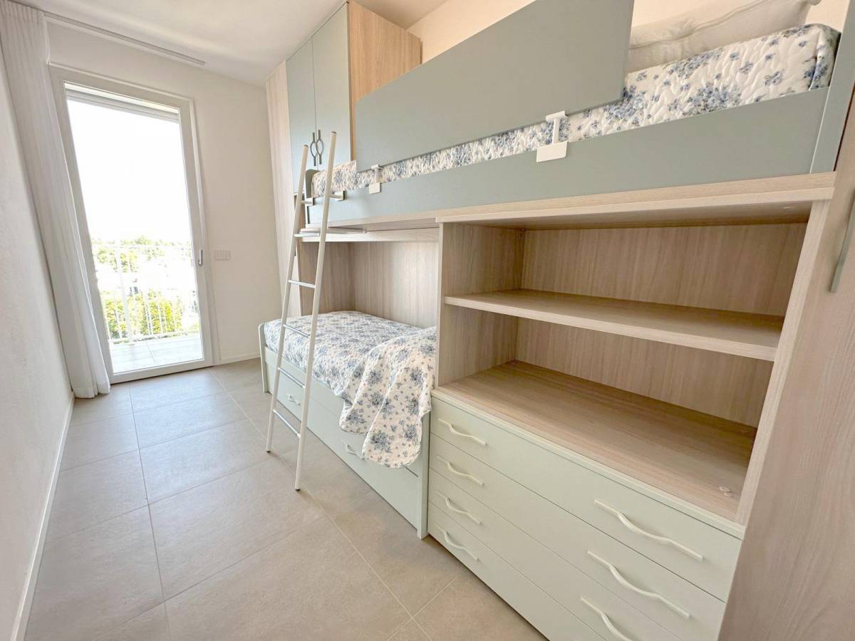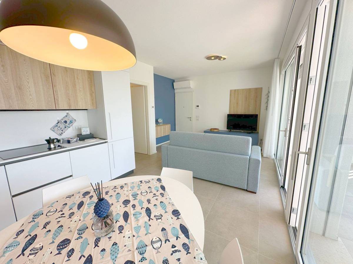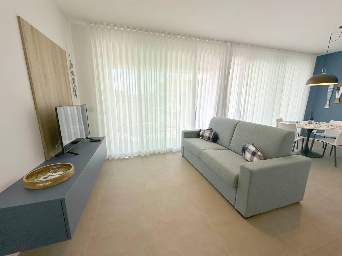 Residence con piscina di nuovissima costruzione situato nella zona di Piazza Aurora a 300 metri dal mare. Appartamento al quarto piano con ascensore, composto da soggiorno con angolo cottura a induzione e divano letto per una persona, terrazzo attrezzato, camera matrimoniale, cameretta con letto a castello, bagno con box doccia, n.1 posto auto (no van). Dotato di tv, clima, lavatrice, lavastoviglie e microonde. Totale posti letto: 4+2. Posto spiaggia escluso, è possibile prenotare il posto spiaggia presso il consorzio di zona. Non sono ammessi animali.